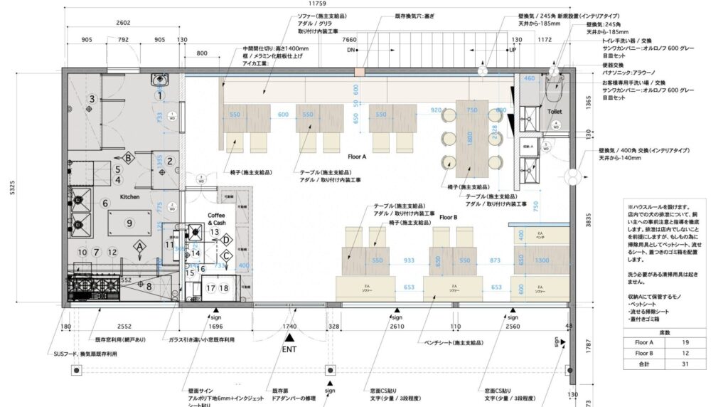 「開業後の理想とする姿」はいわゆるお店づくりの目標であり目指すべき方向性だと思っております。これらを把握したうえで、お二人のワンちゃんへの想いもしっかり理解し、カフェへの信念として「フードもドリンクも美味しくなければならない」という強い想いを言葉にして共有しました。
