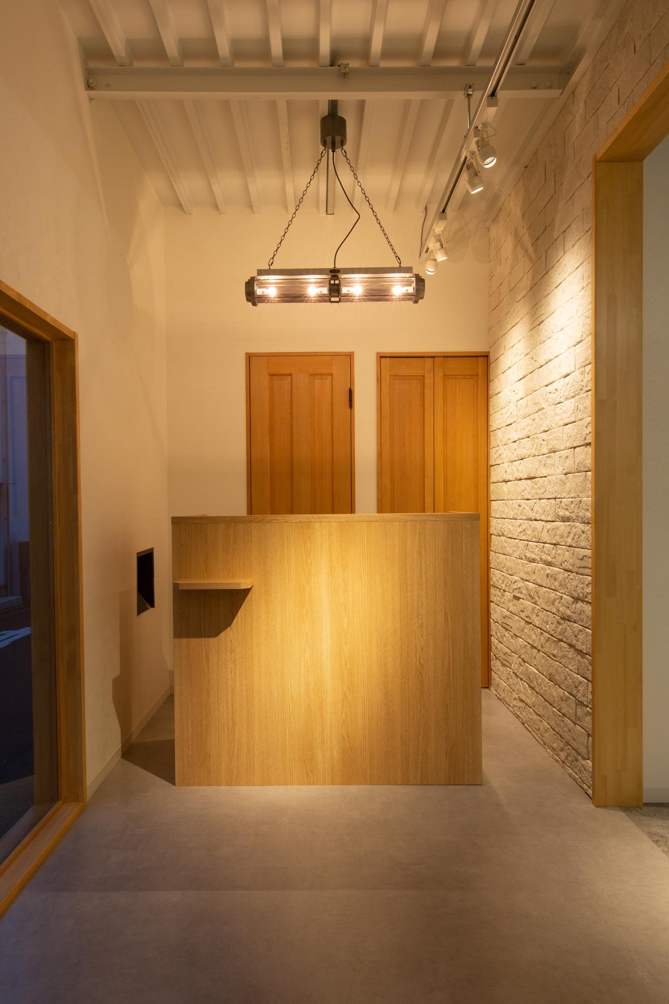 その結果、スタッフ導線と顧客導線をきれいに分けた最適なレイアウトで、外観のデザインと呼応したデザインが完成しました。