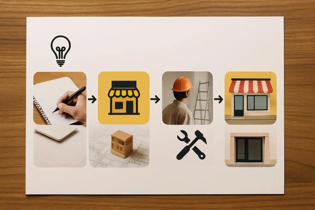 お店を開く過程では、初心者にとって想定外の課題や判断に迷う場面が数多く発生します。特に、店舗のデザインから施工に至る過程は、理想のイメージを現実の店舗空間として形にする最も重要な段階です。