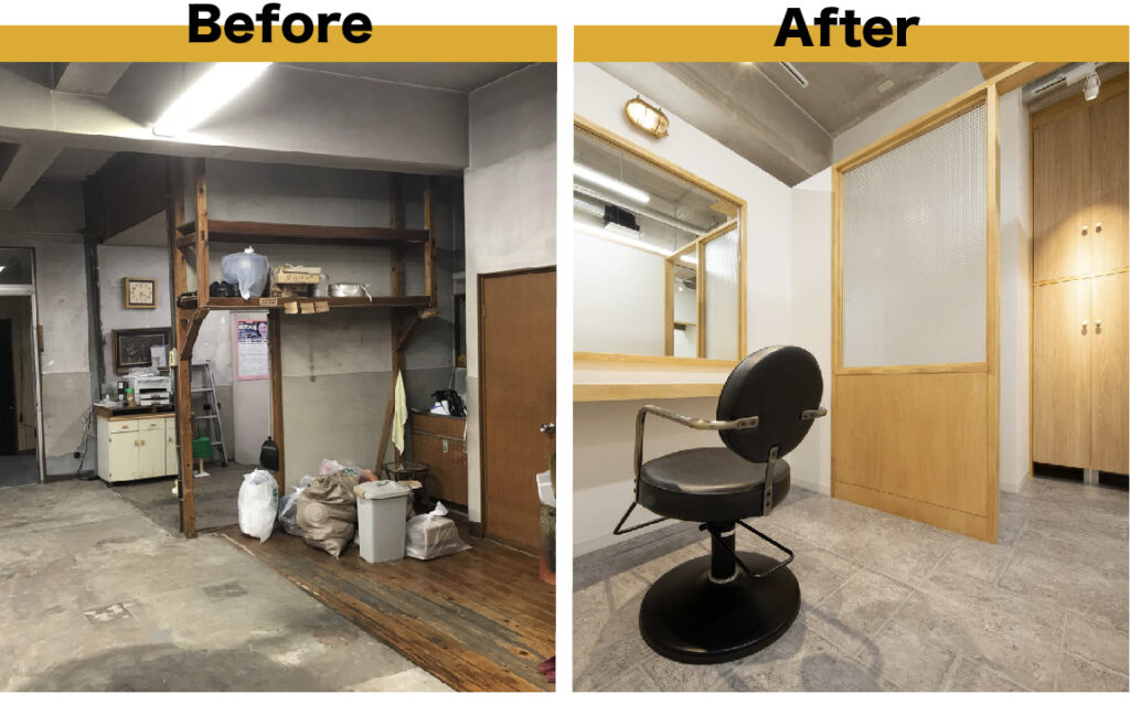 事例2:工場跡地で築古物件にプライベートサロンをデザイン
