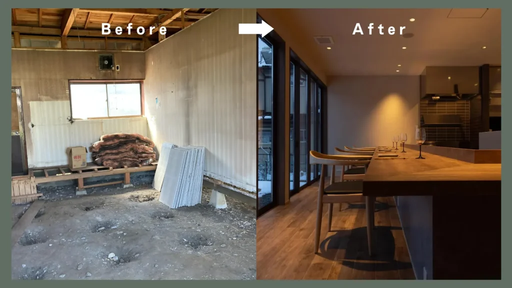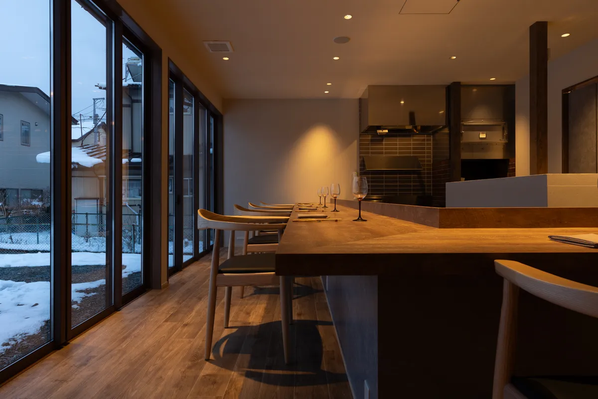 事例1:築年数不明の築古物件にコース料理専門店をデザイン