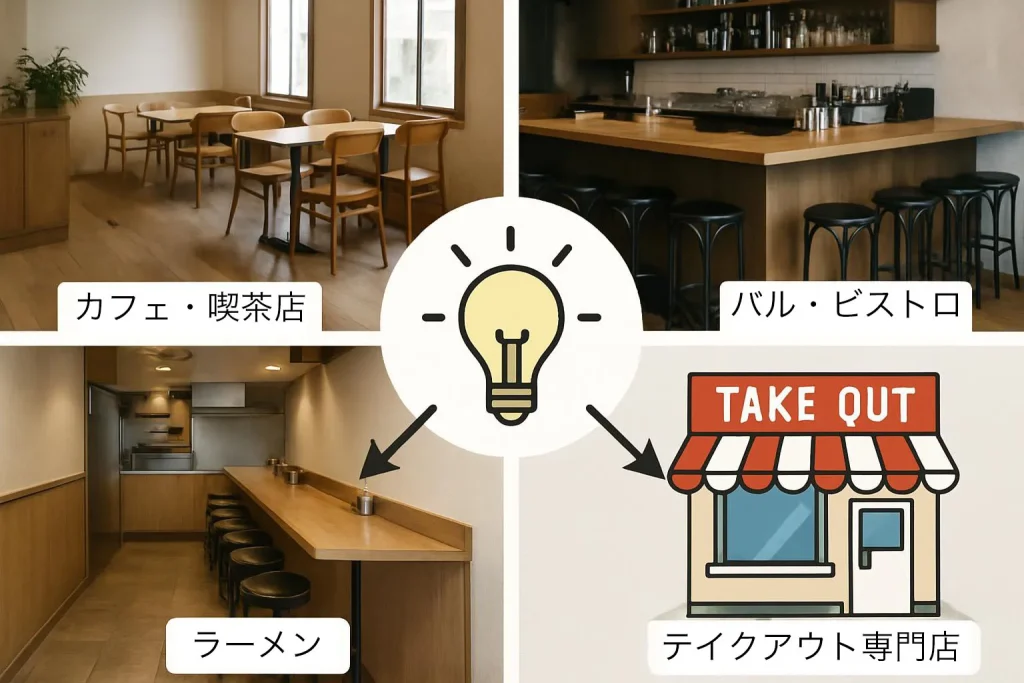 ラーメン店 | 5-10坪 | 6-12席 | 短時間利用、高回転 |