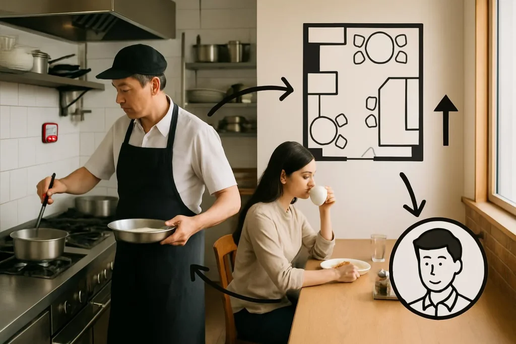 狭小飲食店における動線設計は、限られた空間での効率性を最大化する重要な要素です。動線とは、お客様とスタッフが店内で移動する際の経路のことを指し、これが適切に設計されていないと、サービス品質の低下や運営効率の悪化を招きます。