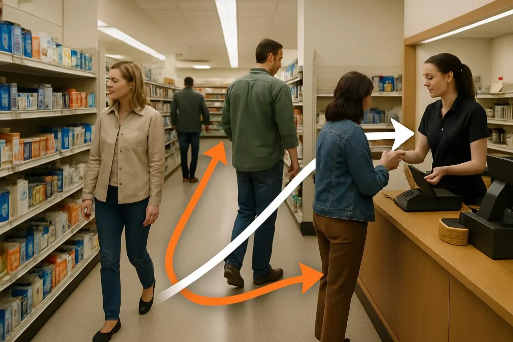計画購買とは、来店前から購入を予定していた商品を買うことを指します。一方、非計画購買は、店舗内で商品やサービスに出会い、その場で購入を決める行動を意味します。店舗レイアウトを工夫することで、こうした非計画購買を促し、客単価の向上が期待できます。